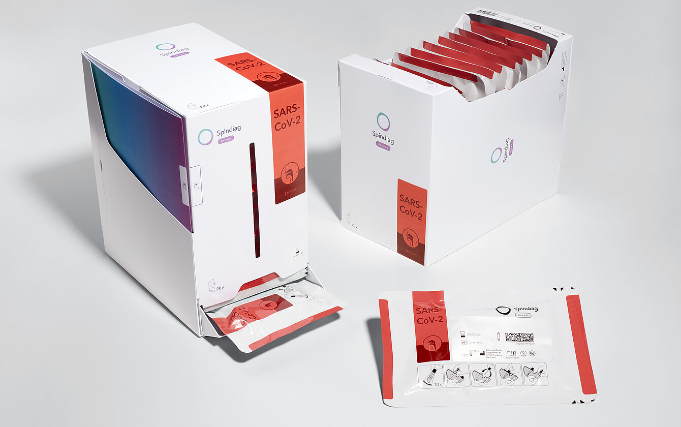 Im Auftrag des Freiburger Medizintechnik Unternehmens Spindiag GmbH, das im November 2020 einen PCR-basierten Corona Schnelltest auf den Markt brachte, realisierte das Entwicklungsteam von Faller Packaging im badischen Waldkirch eine clevere Transport- und Präsentationsverpackung für die Einweg-Kartuschen: die sogenannte EasyTake Box.