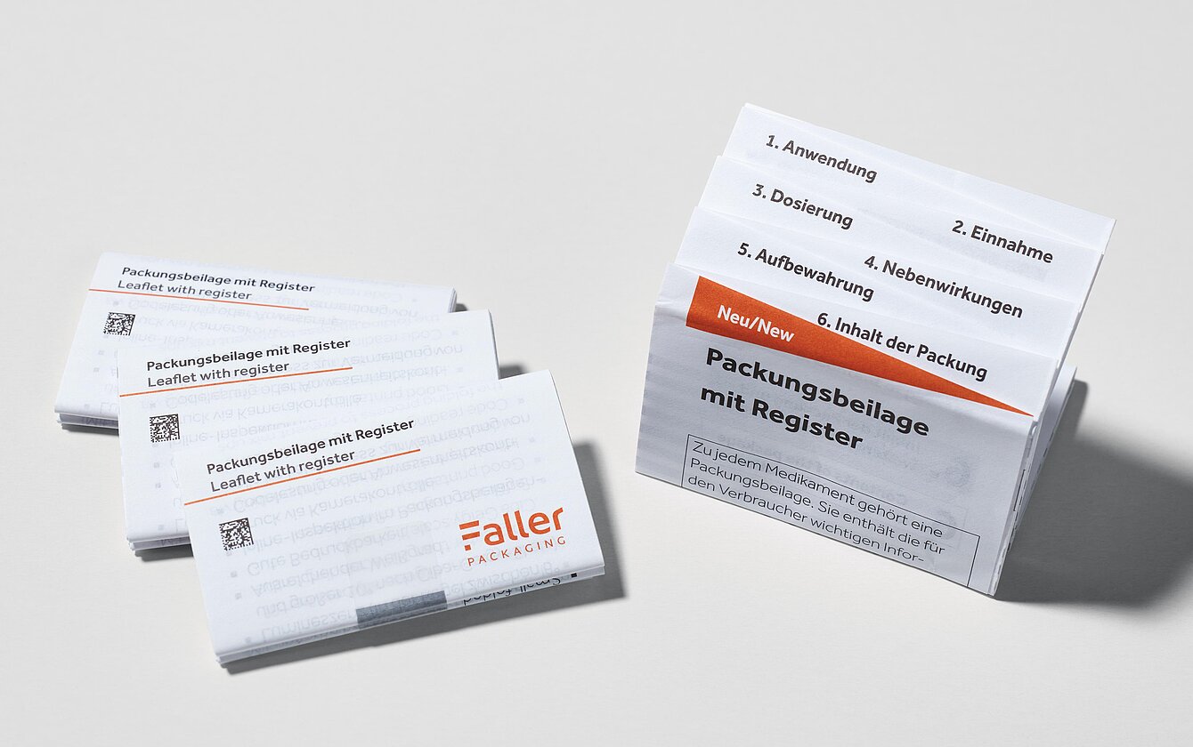 Faller Packaging bringt Packungsbeilage mit Register auf den Markt