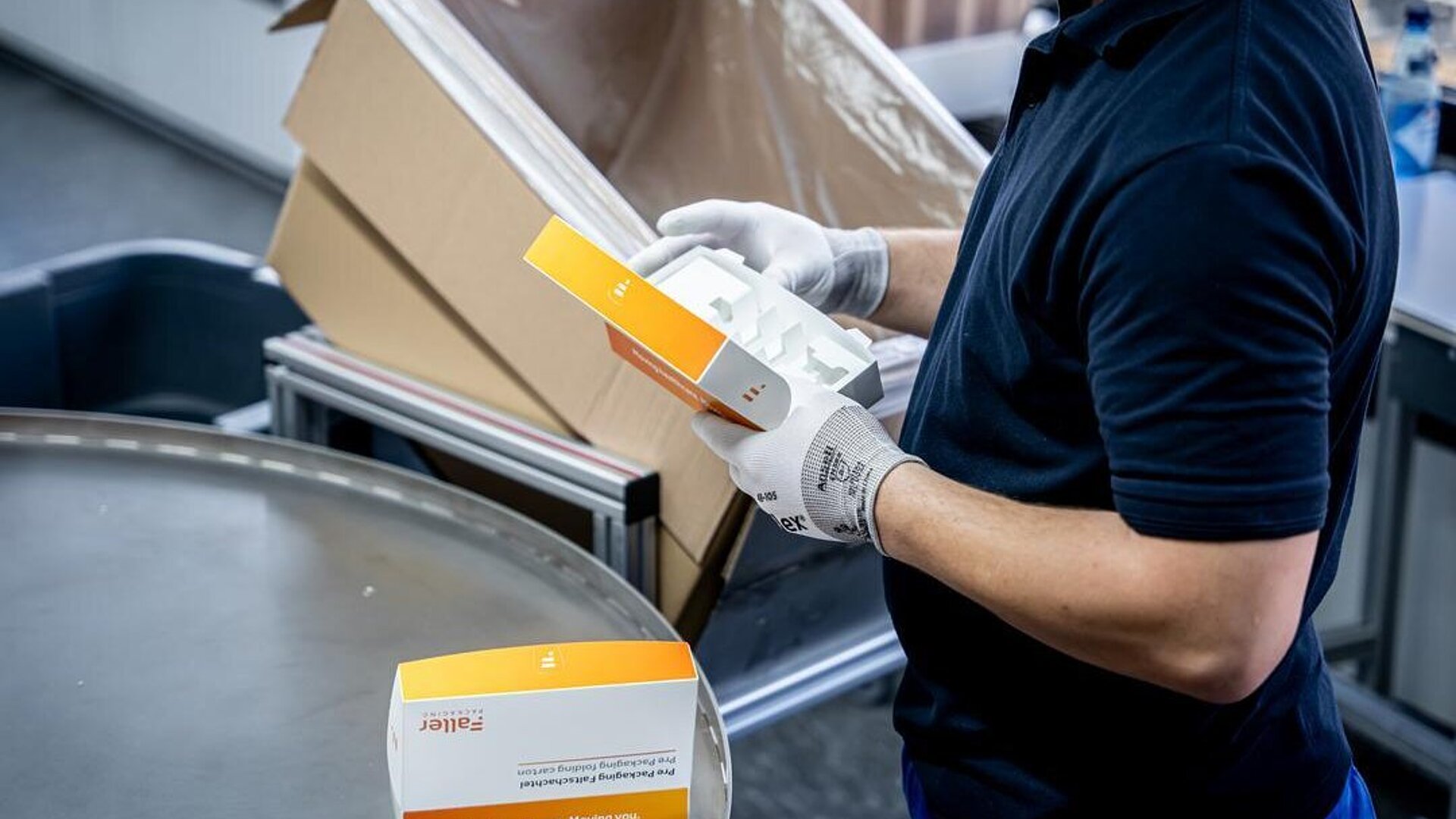Welche Vorteile hat der PrePackging Service von Faller Packaging? Er ermöglicht einen schnellen und effizienten Markteintritt für pharmazeutische Produkte. Zusammen mit dem Kunden werden pharmakonforme und recycelbare Kartonverpackungen für alle Parenteralia und verschiedene Darreichungsformen wie Vials, Ampullen, Spritzen und Medical Devices erarbeitet. Die Entwicklungsabteilung begleitet den Prozess ab der Clinical Trial Phase 3 sehr eng, um die optimale Verpackungslösung für das Produkt zu finden. Kleine Mengen oder komplexe Konstruktionen fertigt Faller Packaging von Hand. Bei steigendem Bedarf produziert der Verpackungsspezialist halb- bis vollautomatisch und stellt dazu die Faltschachteln maschinell auf. Die Konzepte können maschinengängig und für spätere Großmengen über Verpackungsmaschinen ohne Veränderung eingesetzt werden.