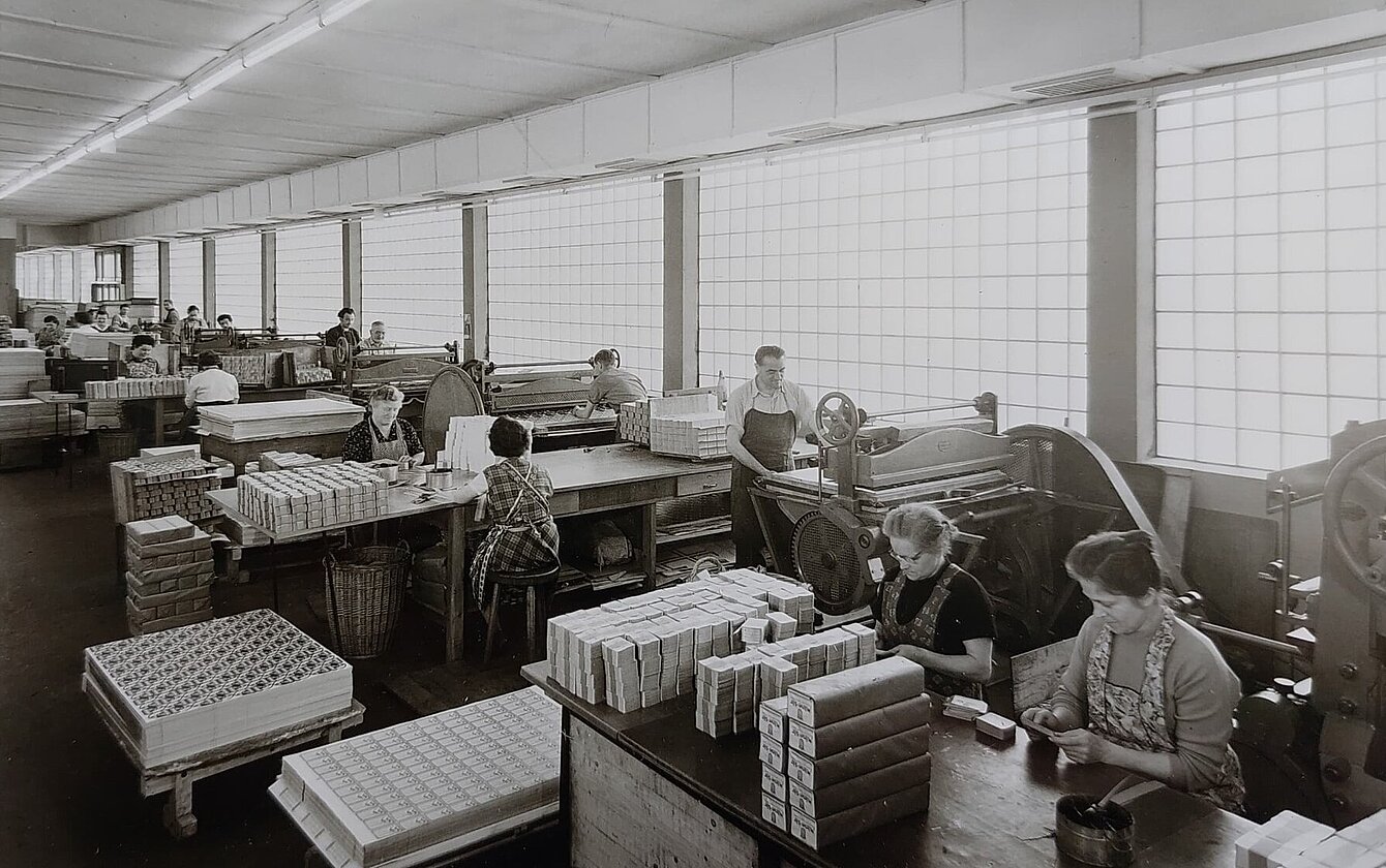 In den ersten Jahrzehnten unserer Firmengeschichte waren unsere Druckaufträge sehr vielfältig: Vom Citronensprudel der "Mineralwasserfabrik Ferdinand Altendorf in Emden" über Faltschachteln für Pharmaprodukte der "Carl Bühler, Pharmazeutische Präparate, Konstanz" bis hin zu Verpackungen für Schwarztee, Bettwäsche und Zahnpasta reichte das Spektrum.