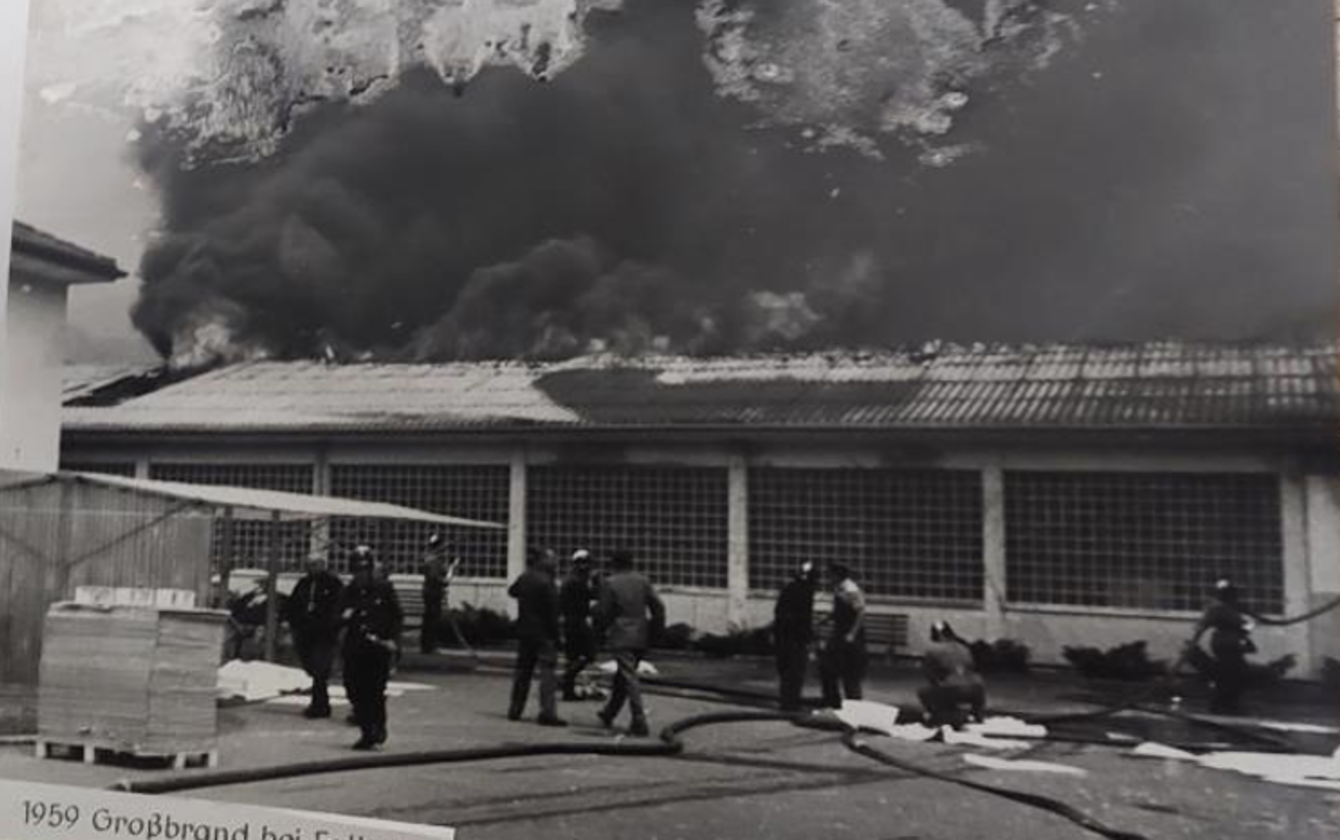 1959 traf uns ein großes Unglück: Ein Großbrand beschädigte unsere Produktionsgebäude in Waldkirch schwer.