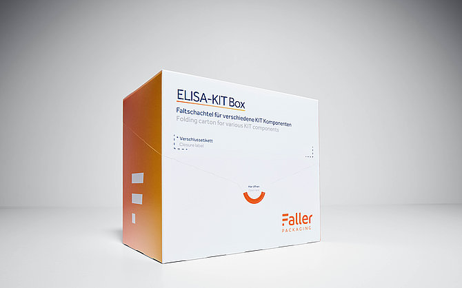 Optymalna wielkość opakowania ELISA-KIT oszczędza miejsce podczas przechowywania i koszty transportu. Jest ono bardzo przyjazne dla użytkownika: łatwy do otwierania (easy-to-open), wszystkie elementy testowe są przejrzyście rozmieszczone i łatwe do wyjęcia. Ze względu na wyłączne zastosowanie kartonu jest on w 100% przetwarzalny.